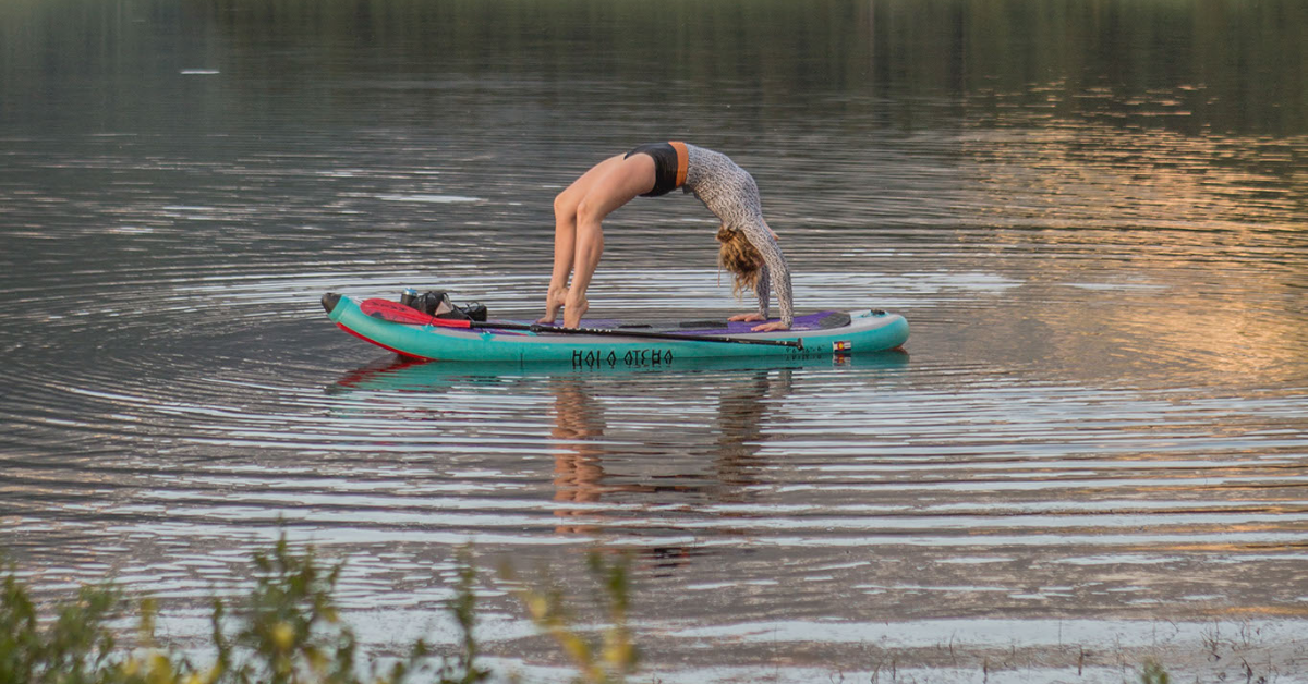 The Hala Asana is our go-to yoga platform. It is an all-around board with yoga-specific features like a full-coverage deck pad to keep you grounded and balanced.